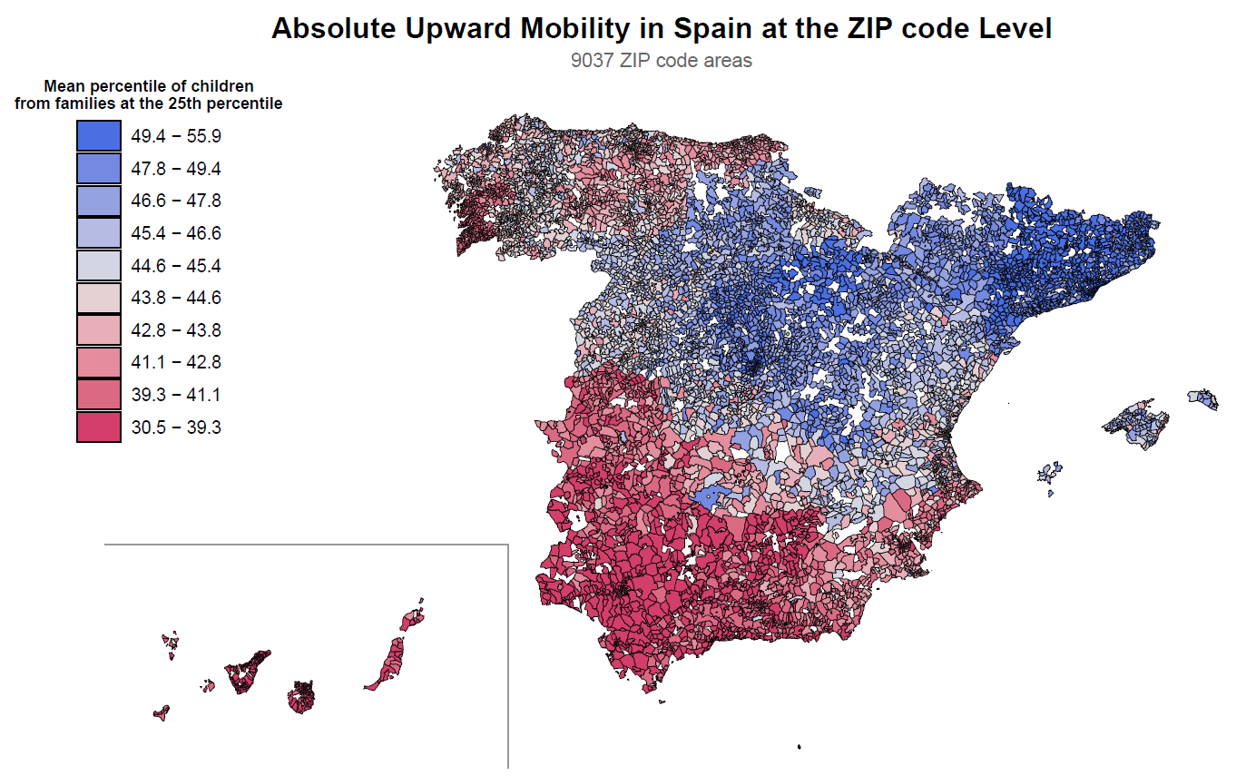 This study is the foundational paper of the Spanish Opportunity lab (Laboratorio de Oportunidades), a research center dedicated to advancing our knowledge on the causes and consequences of social mobility and inequality in Spain using big data. Founded by our WIL Fellow Javier Soria, the Lab is a unique initiative in Europe born from a pioneering collaboration between Opportunity Insights at Harvard University, the World Inequality Lab, the Felipe González Foundation and Future Policy Lab. Interactive maps and more information are available at //labdeoportunidades.com/en