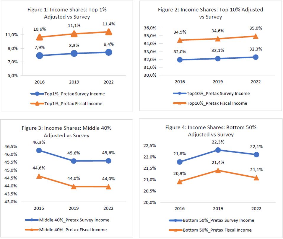 • Between 2016 and 2022, income inequality increased. In 2022, the top 1% earned 11.4% of national income, and the top 10% earned 35%. Meanwhile, the income share of the middle 40% declined.