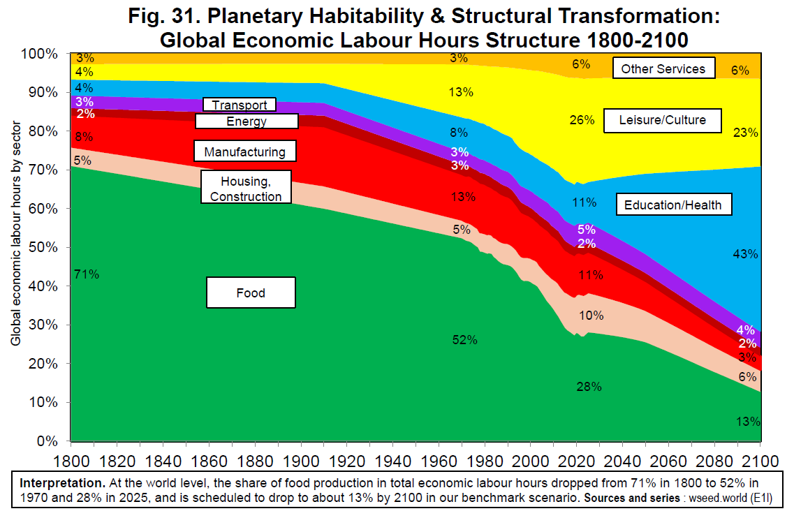 In this paper, Lucas Chancel, Cornelia Mohren, Moritz Odersky, Thomas Piketty, and Anmol Somanchi construct a new historical multi-sector global database* covering 57 countries and regions from 1970 to 2025 and develop an input-output projection model to 2100. They study scenarios in which all countries converge to the same per capita GDP level by 2100, and assess under what structural and energy conditions this convergence is compatible with the 2°C climate target. Unlike standard climate-economy models, they examine sectoral reallocation toward immaterial sectors as a climate determinant, rather than treating it as a byproduct of development.